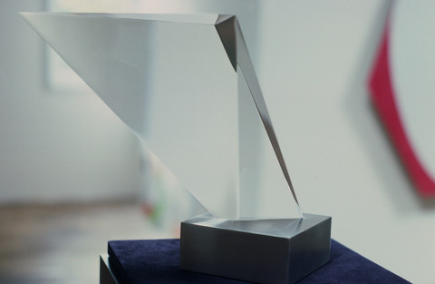 AIRANGLE: (1979) 31"X 8"X4", Acrylic on Stainless Steel Base; Private Collection Chicago